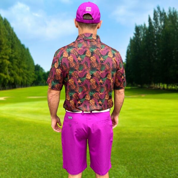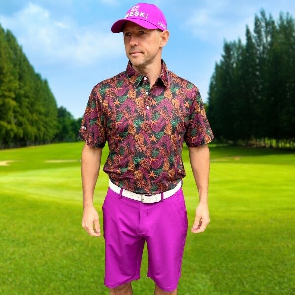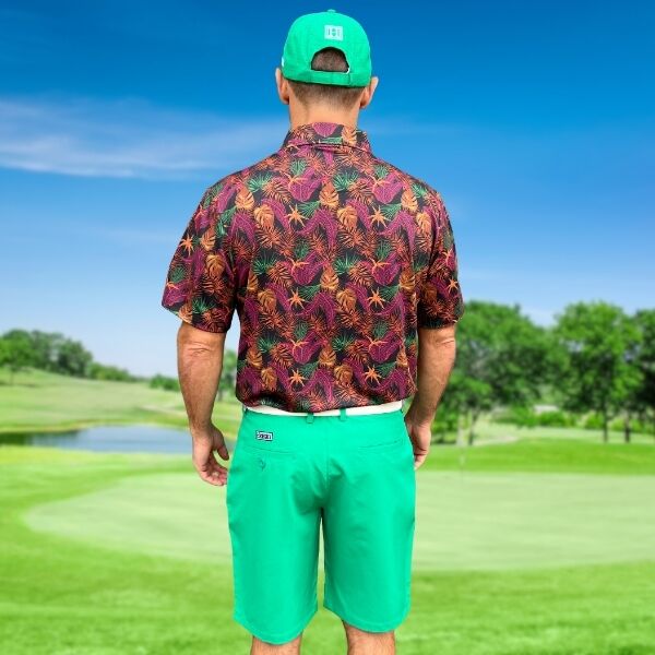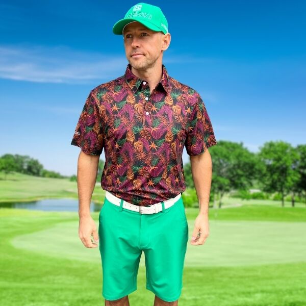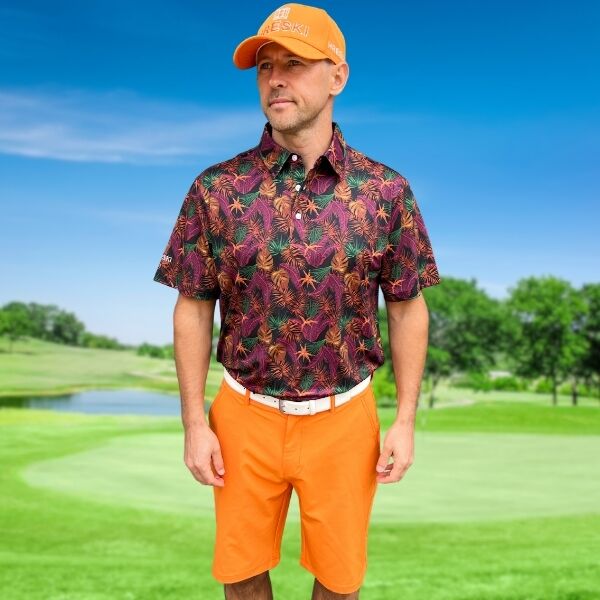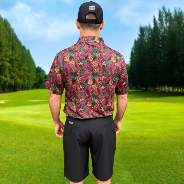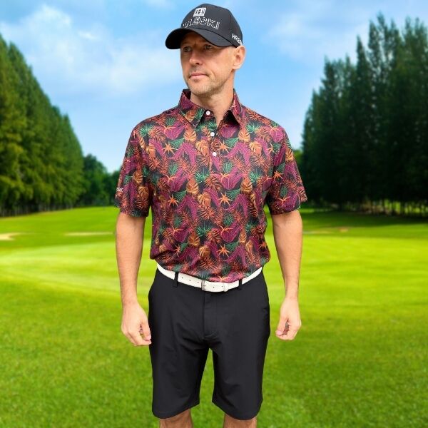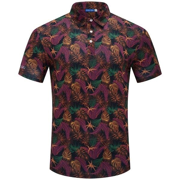 Assortment of Green, Maroon, Brown, and Orange Palm Leaves on Dark Background Golf Shirt – Hreski 244