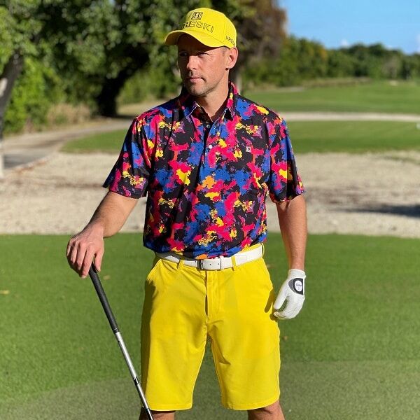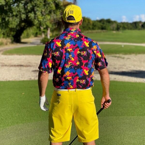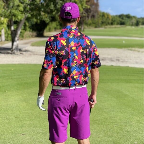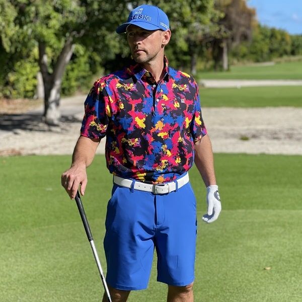 - Custom Design: Blue, Pink, Yellow and Black Smears Painting Golf Shirt