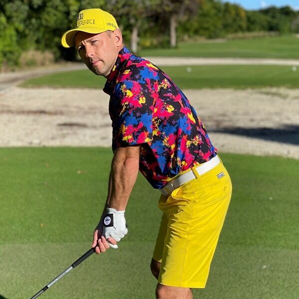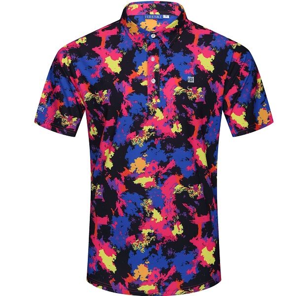 Blue, Pink, Yellow and Black Smears Painting Golf Shirt – Hreski 171