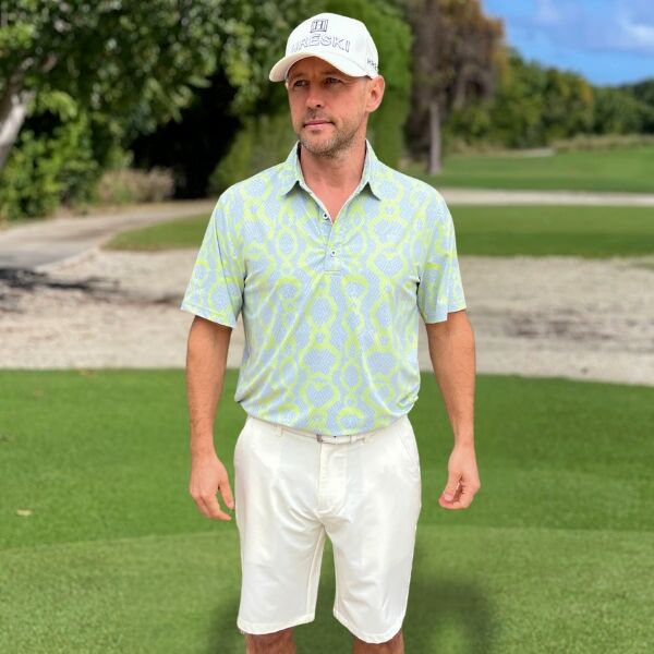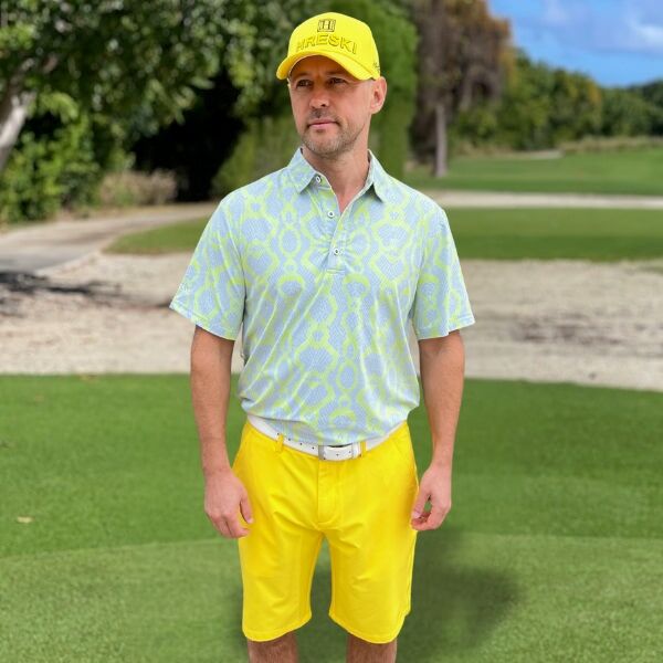 Grey Snakeskin with Lime-Green Lines Golf Shirt – Hreski 142