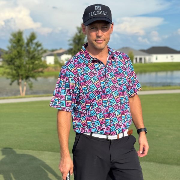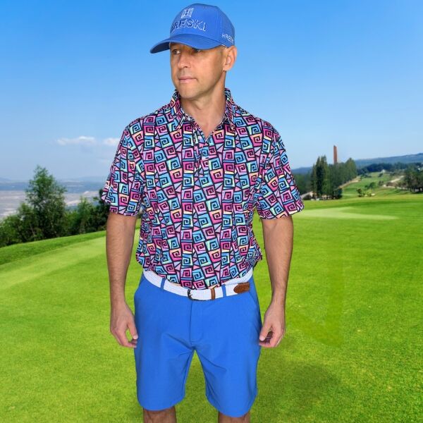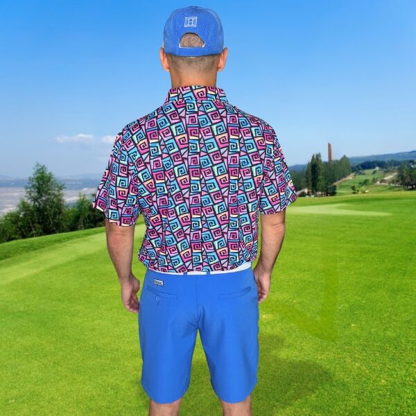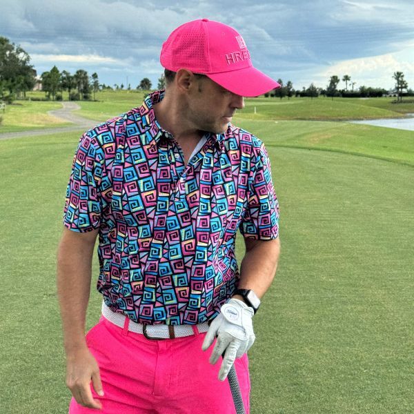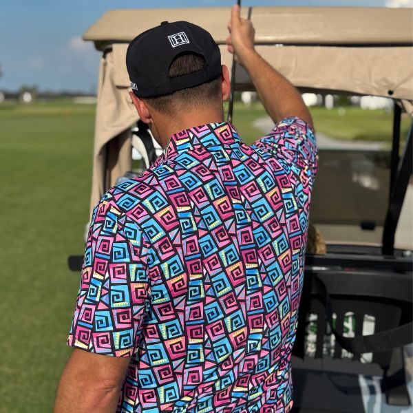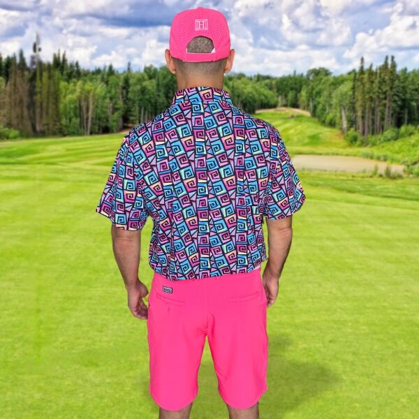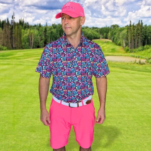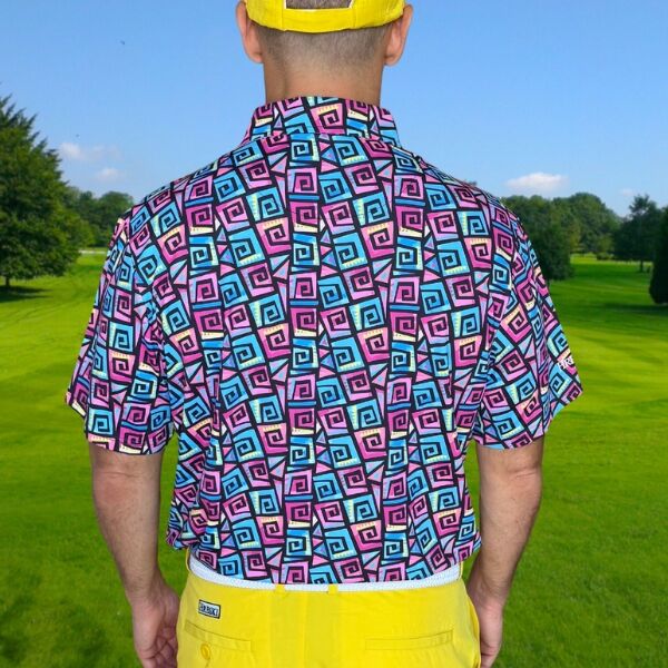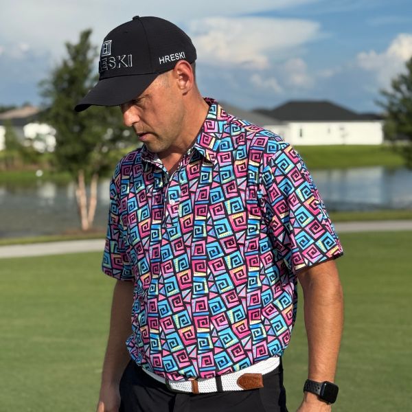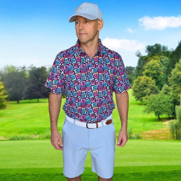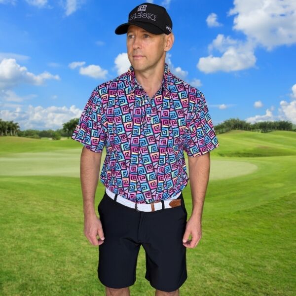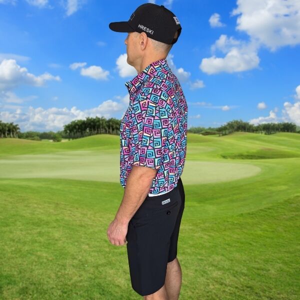 Hypnotic Maze in Teal, Pink, and Black Golf Shirt – Hreski 253