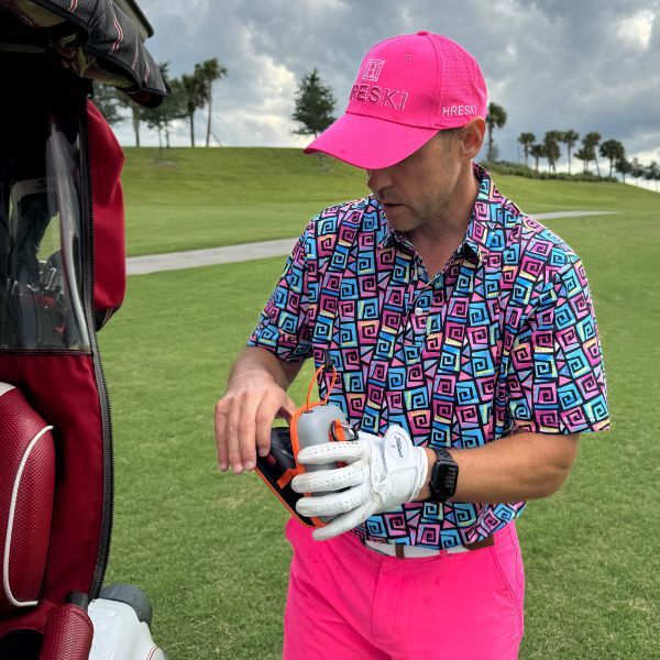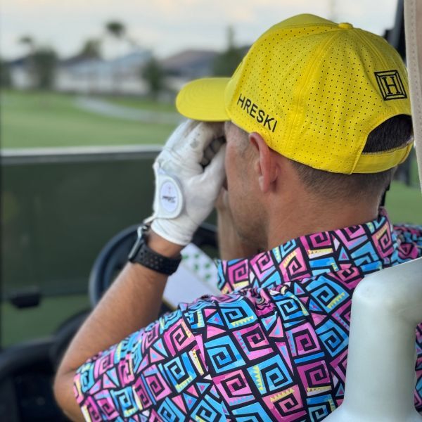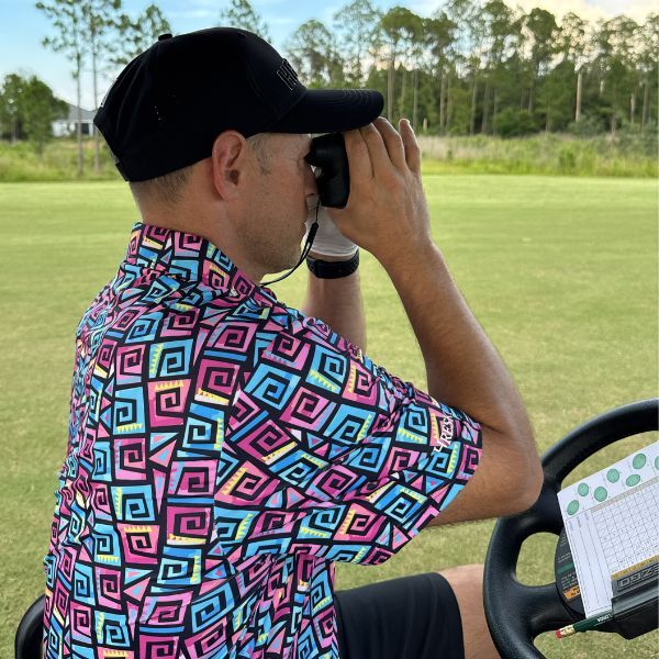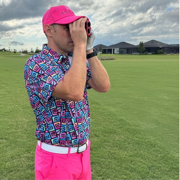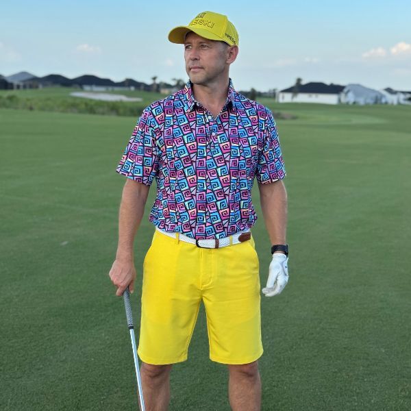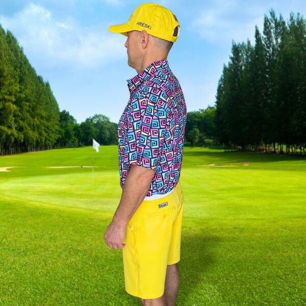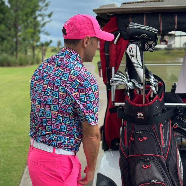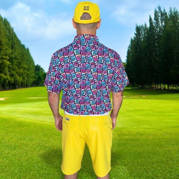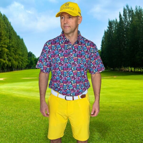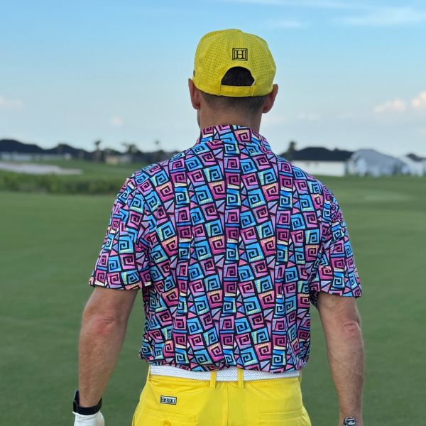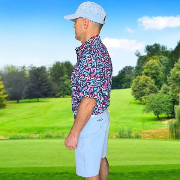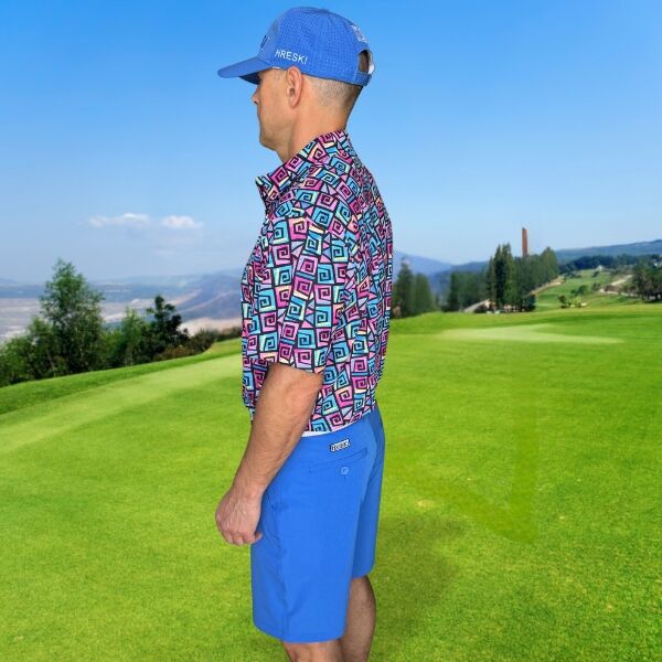 Hypnotic Maze in Teal, Pink, and Black Golf Shirt – Hreski 253