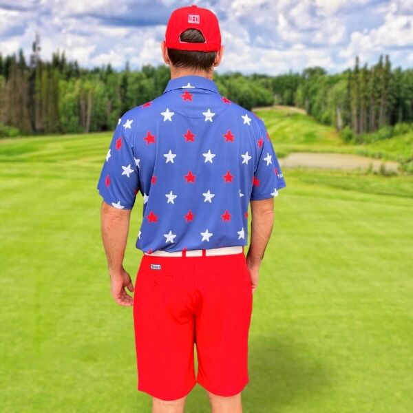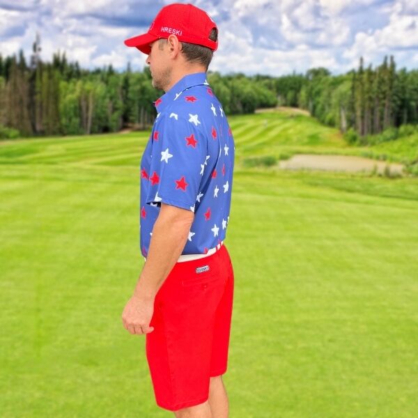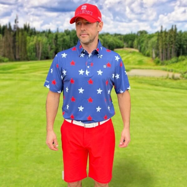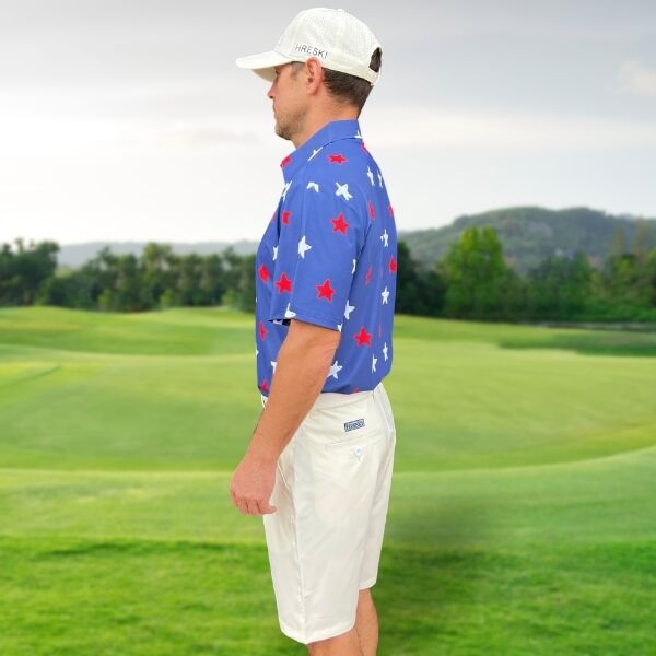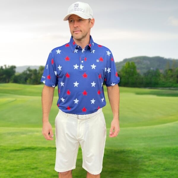 White and Red Stars on Navy-Blue Background Golf Shirt – Hreski 205