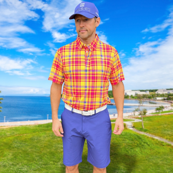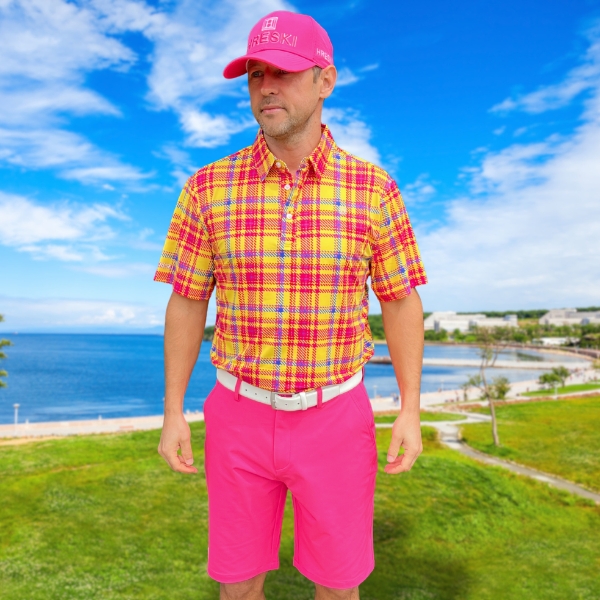 Yellow, Pink, and Purple Plaid Design Golf Shirt – Hreski 219