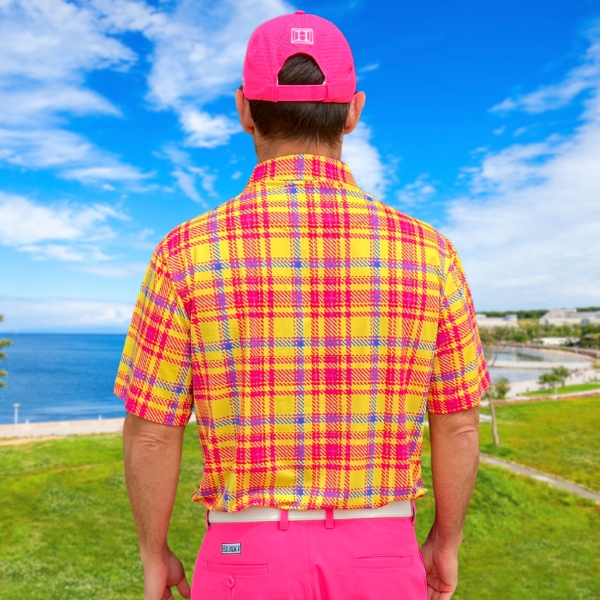 • Custom Design: Yellow, Pink, and Purple Plaid Design Golf Shirt