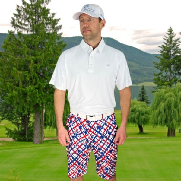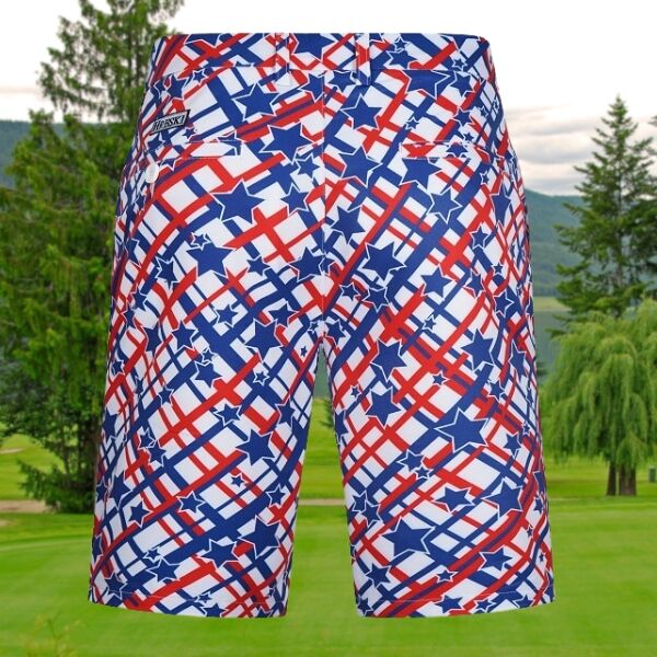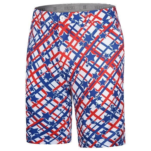 Blue Stars over Red and Blue Lines on White Background Golf Shorts – Hreski 203