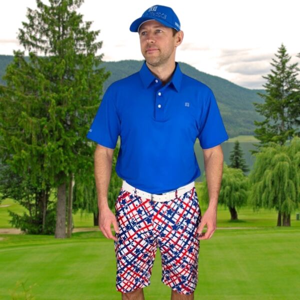 - Custom Design: Blue Stars over Red and Blue Lines on White Background Golf Shorts