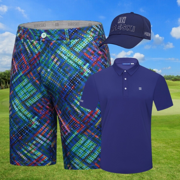 - Custom Design: Multi-Colored Dotted Stripes on Green Themed Background Golf Shorts