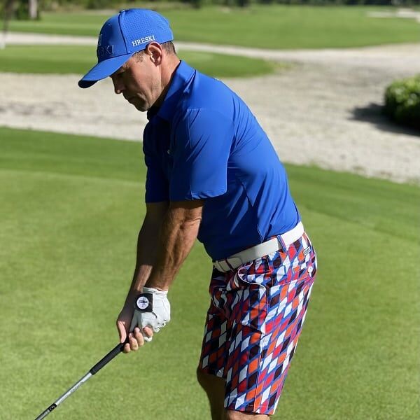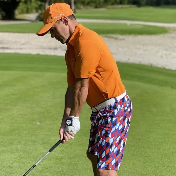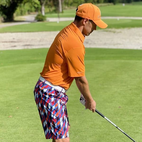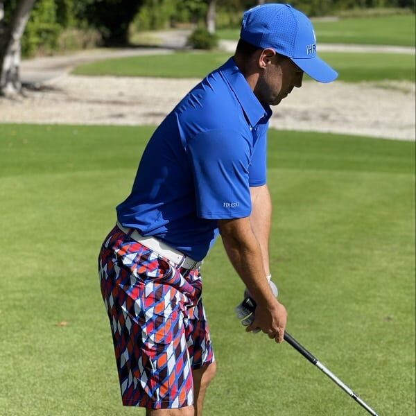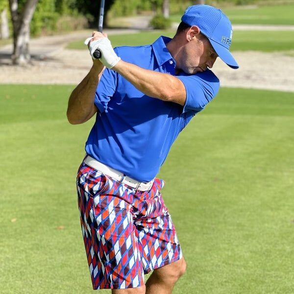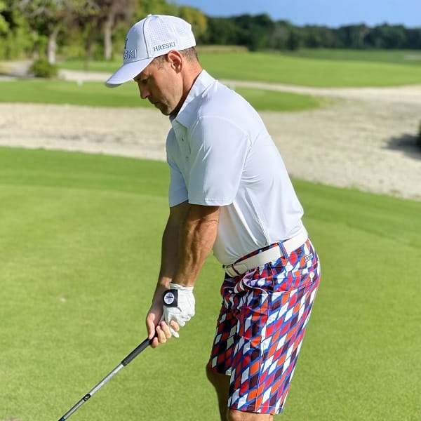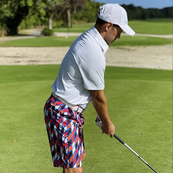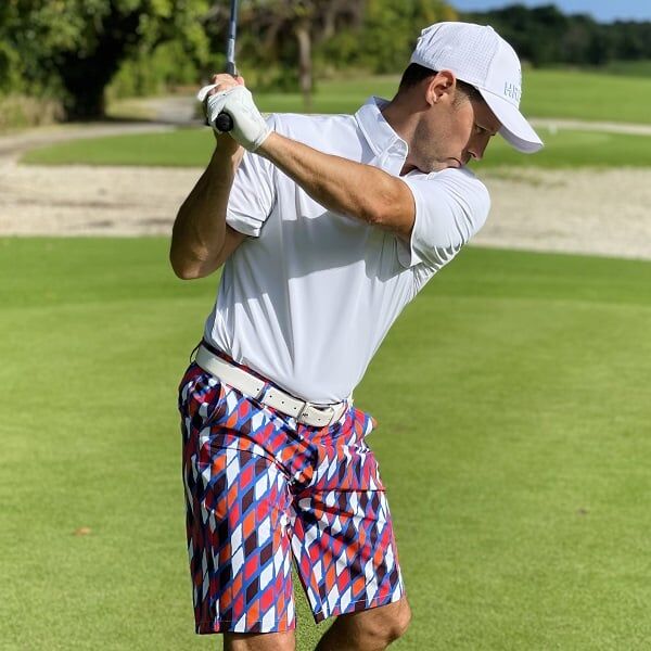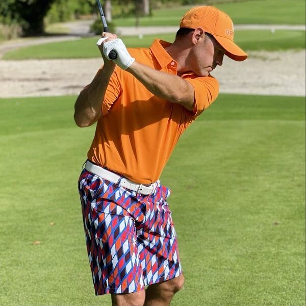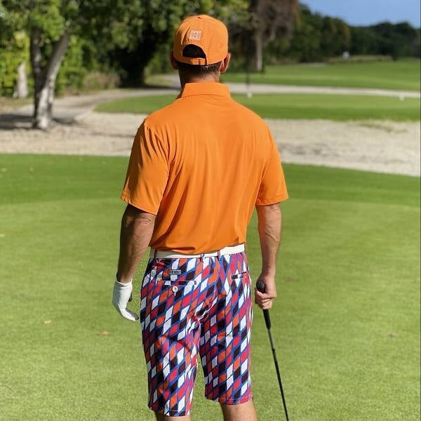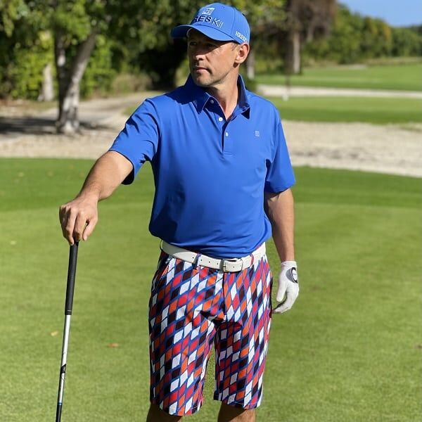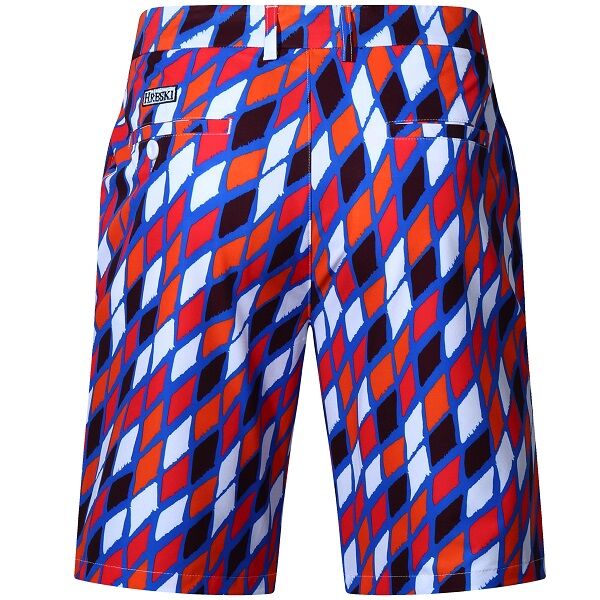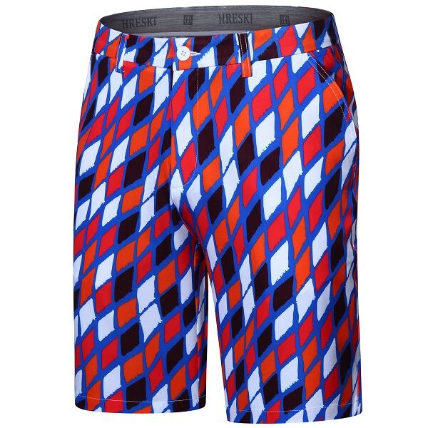 Red, Orange, Black and White Diamonds on Blue Background Golf Shorts – Hreski 189