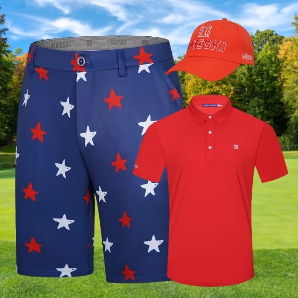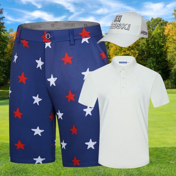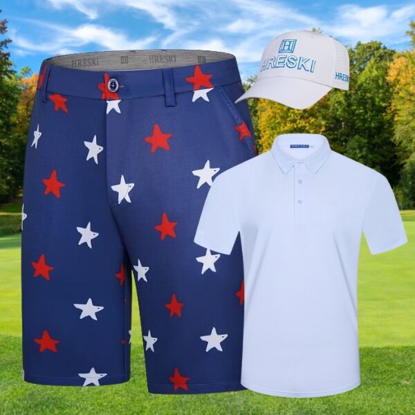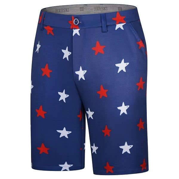 White and Red Stars on Navy-Blue Background Golf Shorts – Hreski 205