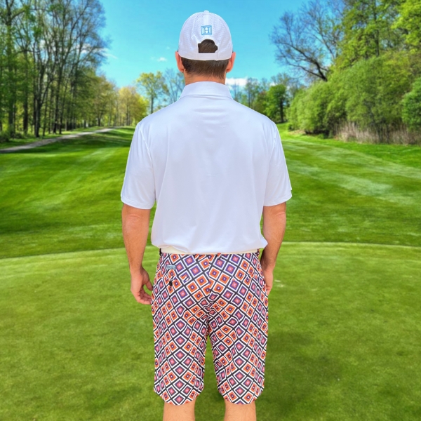 White, Purple, and Orange Diagonal Squares on Black Background Golf Shorts – Hreski 227