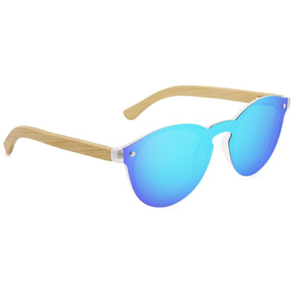 Round Frame, Polarized Icy Blue Lenses, Wooden Temple Sunglasses – Hreski 1210